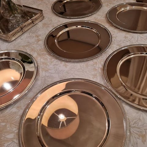 Sæt af 8 sølvbelagte charger-tallerkner – Ruban Croisé mønster – Europa