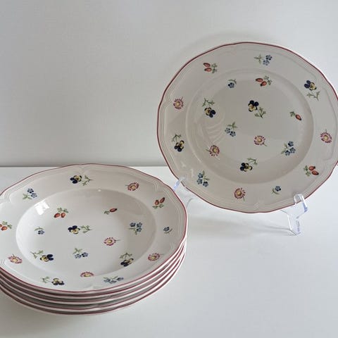 6-delt service bestående af flade spise-tallerkener, fra den populære serie "Petite Fleur" af den kvalitetsproducent Villeroy & Boch, fremstillet i Luxembourg.