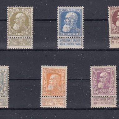 Belgia, Leopold II Grove skægserie, mint, fra 1905, katalog OBP/COB 74/80, med Kaiser-certifikat. Klik på den blå "gå til varen" knap, for at købe eller byde på denne vare. Den samlede pris vil blive vist inden du afgiver dit bud.