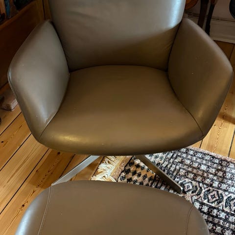 Flot læderstol med fodskammel