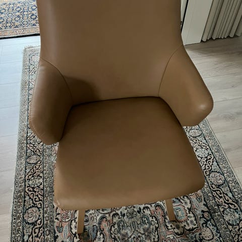 En gedigen kvalitets stol i sort læder med ben i lys eg.
