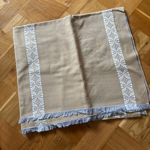 Smukt grafisk mønster på en dug til at dække op på terrassen eller altanen.