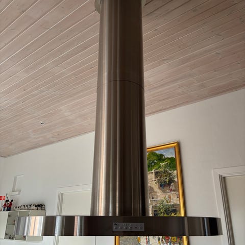 Thermex emhætte i ø-model til loftmontering over kogeø. Udført i rustfrit stål med firkantet glasplade over kogepladen. Styres via separat betjeningspanel med knapper til lys og sugestyrke. Velegnet til åbne køkkenløsninger, hvor emhætten placeres frit i rummet. Monteres i loftet med lodret aftræksrør i rustfrit stål.