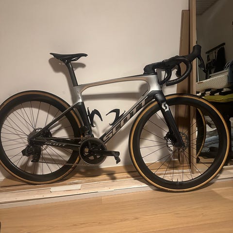 Carbon racercykel med Shimanos elektroniske Di2 geargruppe.