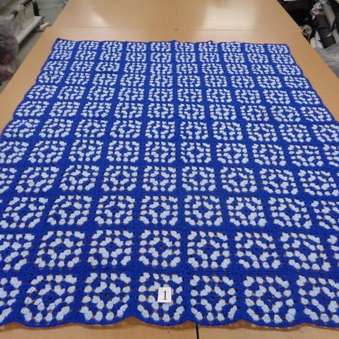 Lækker lun sag du kan putte dig under: Bedstemortæppe (oldemortæppe) hæklet i lækkert blødt acryl- samt strømpegarn med uld i blå og et lille stænk grønne nuancer, af min mor, i røgfrit hjem.