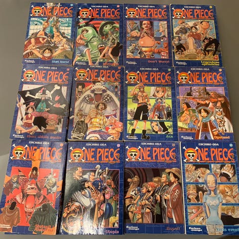 One Piece manga samling bind 1-32 sælges, helst samlet. Bind 33-49 er slettet på billedet da de allerede er solgt. Pris for samlingen er 3000 kr men kom gerne med et bud.