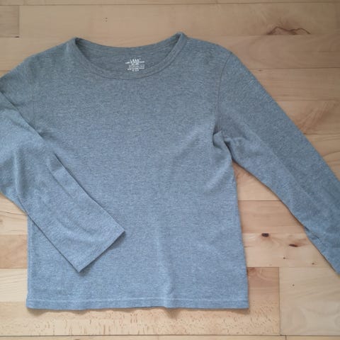 Toppen er grå og fremstillet i blød glitrende polyester. Modellen har rund hals, korte ærmer og volant-detaljer ved ærmer og nederste kant. Velegnet som hverdagsbluse eller til mere afslappede anledninger.