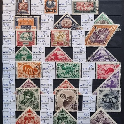 I pæn / almindelig kvalitet. Michel 2018 katalog værdi 112,2 euro = 840 dkr. Inkl. 1 komplette sæt. Touva er en af 21 autonome republikker i den russiske føderation. i det sydlige Sibirien med Mongoliet mod syd. Smukke motiver, fra et fattigt land, med skøn natur. Ustemplet betyder spor efter hængsel på bagsiden. Sendes gerne, uden planche, mod dækning af porto. Spar porto, se venligst mine andre frimærke- og postkort tilbud. Sælges meget billigt, UNDER 10 % af katalogværdi