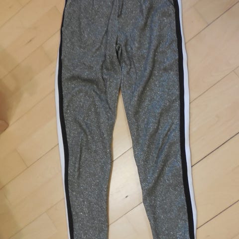 Bløde varme bukser/ leggings til pige. Striber ned langs med benene. Sorte. Bukserne har små brugsspor, derfor lav pris. Kun vasket i parfumefrit vaskepulver. Røg- og dyrefrit hjem. Sendes gerne.