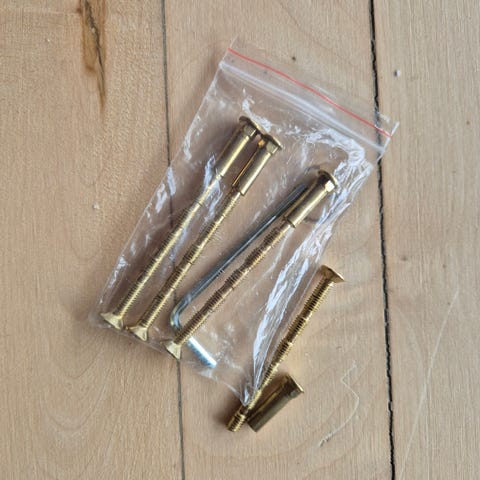 Sæt af messing knækskruer, typisk brugt til dørgreb.