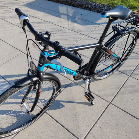 Rigtig fin cykel 26” til dreng 7-12 år, med lidt brugs spor. købt hos Ry cykler fra ny af. mærket Frog, lavet af genbrugsmaterialer. Helt klar til nye cykelture, med ringklokke, div reflekser, lys, og lås.