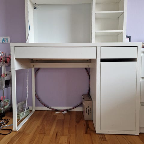 Har været skruet sammen med et anden MICKE bord, derfor skruetrækker i siden.