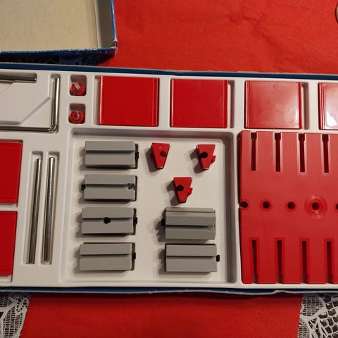 Bilo fix kasse næsten komplet samt ekstra kasse med ca 1/2 del. Håndtaget i 1. æske med skade, og der mangler nogle gule ringe.