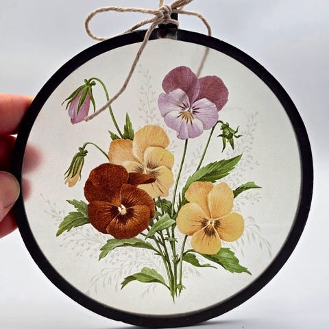 Vægdekoration i metal udformet som tre stiliserede blomster. Overfladen er guldfarvet med let patineret look. Dekorationen består af tre blomsterhoveder med smalle blade og tre buede stængler, samlet i ét stykke. Egnet til ophæng på væg i fx stue, udestue, soveværelse eller entré. Størrelsen fremgår af målebåndet på billederne. Er købt hos Anchers Havecenter i Greve for 1.500 kr.