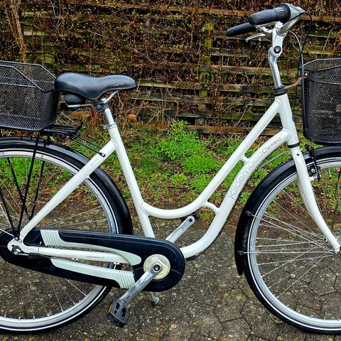 Kildemoes damebycykel med 28" hjul og 53 cm stelstørrelse. Cyklen har lav indstigning og er egnet til kvinder. Den er udstyret med kædeskærm, bagagebærer og kurv foran. Farven er blå. Velegnet til daglig transport i byen og korte ture.