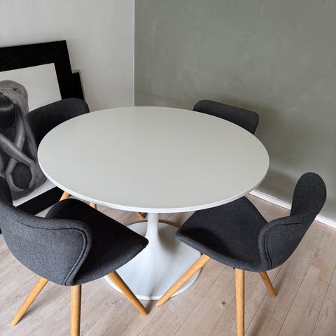 Der medfølger 4 stole, som også er brugte og har mindre brugsspor, men generelt står pænt.