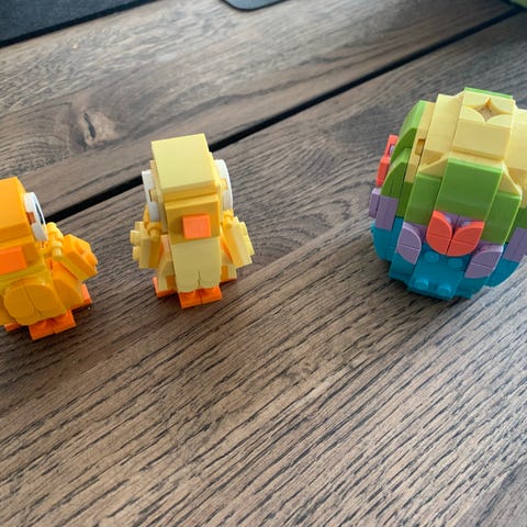 Lego “påskehare” med påskehus, hønsehus & scooter