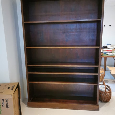 8 hylder i reolen, 4 hylder i den ene side af underskab og skuffer i den anden sidde.