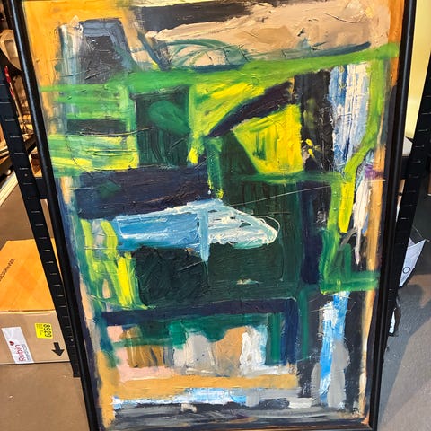 Ukendt kunstner abstrakt portrætmaleri med sort og rød akryl