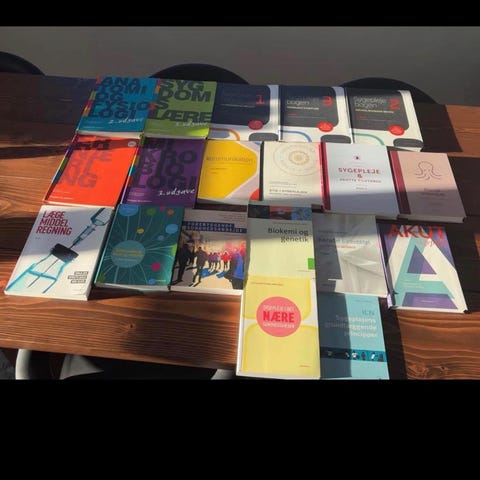 Diverse sygepleje bøger, med få overstregninger
