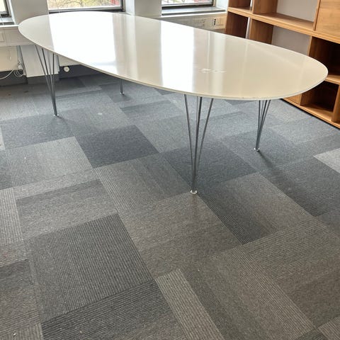 Super Elipse Fritz Hansen Bruno Mathsson spisebord. Jubilæumsmodel med sort bordplade. Krom kanter og krom spændben. Incl 2 udtræksplader som har fast opbevaringsplads under bordet. 120x180, på foto m 1 plade 120x240, fuldt udslået 120x300 hvor der nemt kan sidde 12 personer omkring
