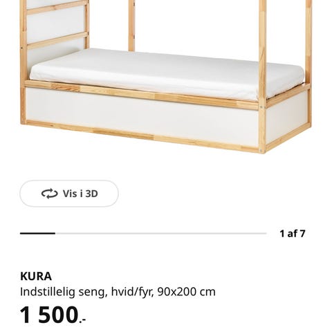 IKEA Kura seng, købt august ‘25, den var for stor til værelset synes vi. Så ingenting er ødelagt og der er ingen hakker eller andet. Alle dele, inkl. brugsanvisning og kvittering haves. Er delvist skilt ad, så det hele kan ligge helt fladt ifm. afhentning.