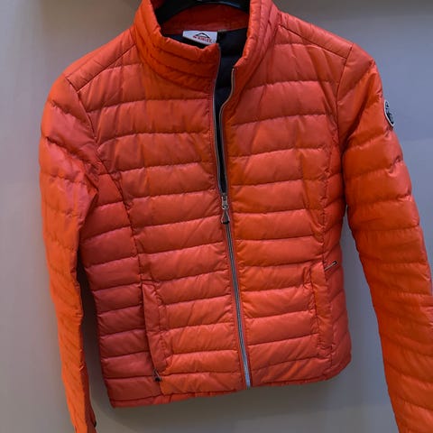Mærket er Sebago, men det kender AI åbenbart ikke! Dunjakke til kvinder i størrelse M. Jakken er rød og foret med dun, hvilket giver god isolering. Modellen har gennemgående lynlås foran, sidelommer med lynlås og quiltet design. Velegnet som let yderjakke i køligere vejr. Rigtig god overgangsjakke til foråret/efteråret. Kun lidt brugt.
