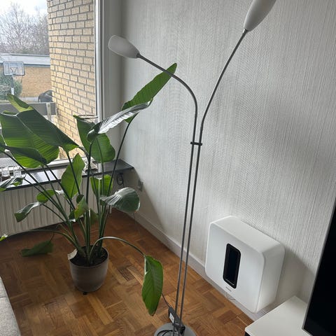 2 stk. stander lamper fra Frandsen lighting med 3 skærme på hver. Lamperne giver et dejligt lys og hyggelig stemning. 2 stk. 500,- og 300,- pr. Stk.