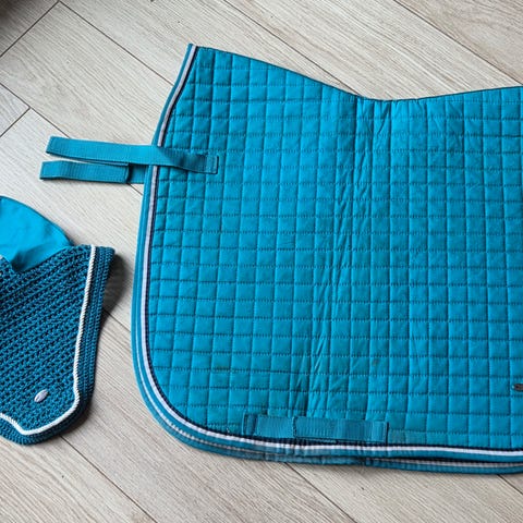 Flot lilla Showmaster dressur underlag og matchende hut, begge dele str. full
