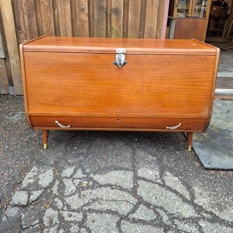Engineered wood with cherry mahogany finish. 137 cm width x 43cm depth x 66 cm height.