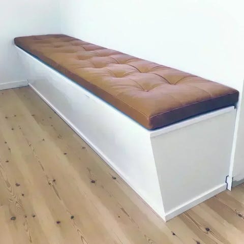 Vi laver også hynder i moderne møbelstoffer og læder lavet på mål så de passer til bænken.