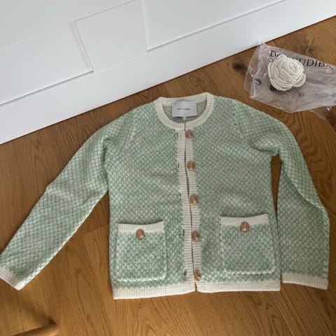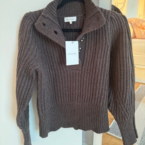Dea Kudibal Sydnie RWS sweater til kvinder i størrelse S. Strikken er i beige uld med strukturstrik og brede ribkanter ved hals, ærmer og bund. Modellen har markante volantdetailler på skuldrene. Materialet er uld (RWS) med anbefalet håndvask ved maks. 30°C, må ikke tørretumbles, stryges eller renses kemisk. Dansk design, fremstillet i Kina.