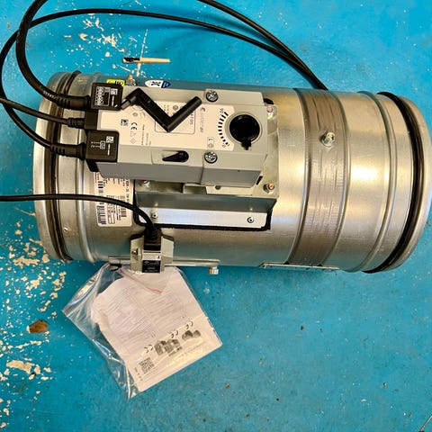 Enheden er forsynet med motor/aktuator og elektrisk tilslutning på ydersiden af spjældhuset.