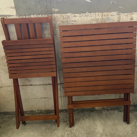 Bortgives - Ikea træbænk, klapbord og klapstole