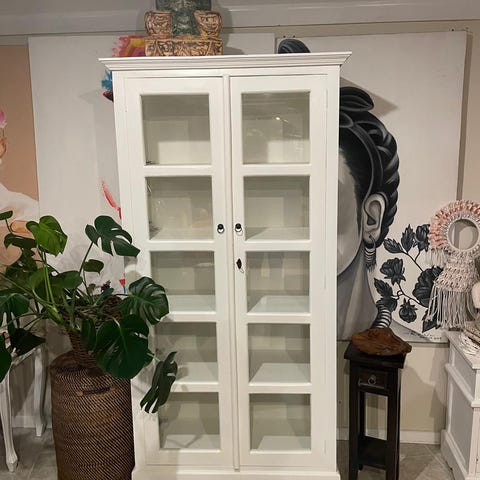 Smuk unik høj kvalitet 100 % håndlavet genbrugsmateriale vitrineskab i sort hvid farve