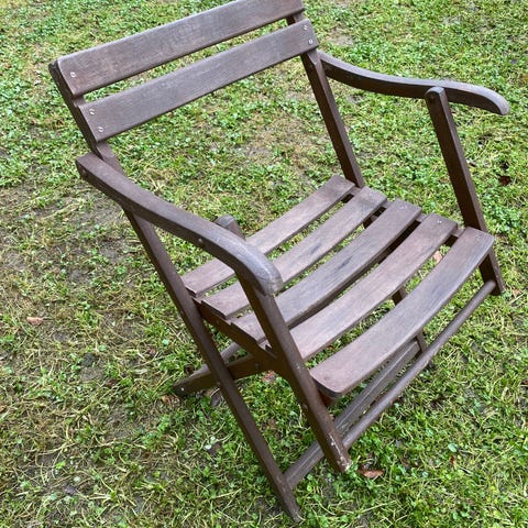 2 Klapstole i træ med mørk snor. Stolen har træstel og flettet/snoet sæde og ryg i mørk farve. Velegnet til brug på altan, terrasse eller i haven, hvor der er behov for en sammenklappelig stol, der er let at flytte og opbevare, når den ikke er i brug.