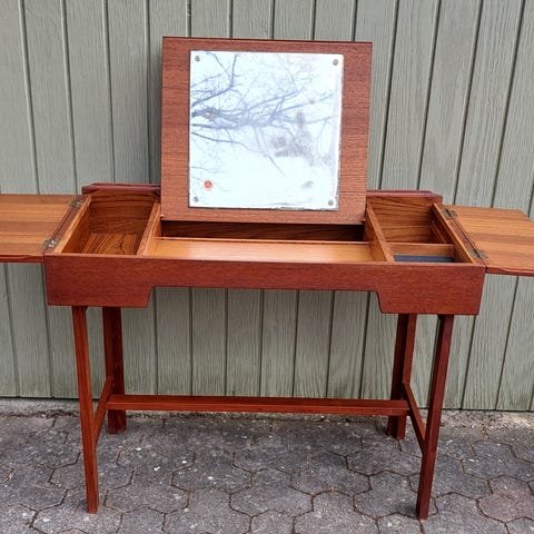 Antik skrive/sminkebord med spejl og skuffer.