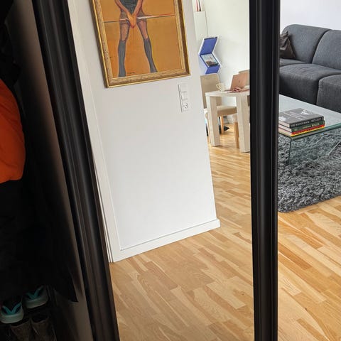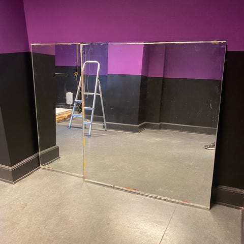 Spejlet er tungt og skal løftes ned fra 1. Sal.