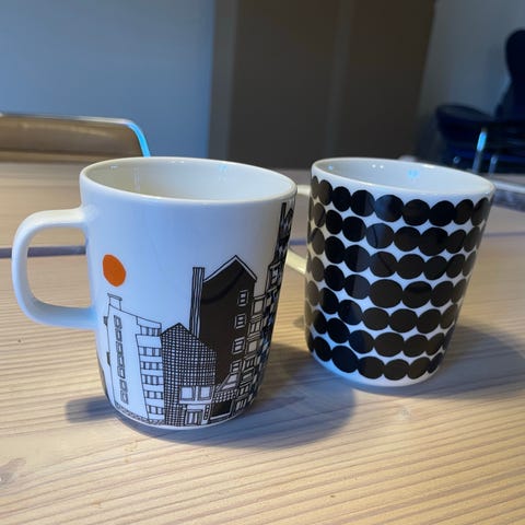 Marimekko kopper , dia. 7,5 cm. og højden er 7 cm.