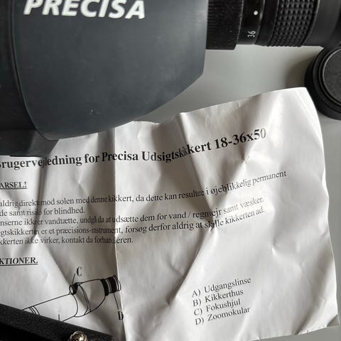 Pursuit udsigtskikkert monteret på stativ. Kikkerten er i et lige, rørformet design med vinklet okular og er egnet til observation på længere afstande, for eksempel natur- og fuglekik. Leveres med trefodsstativ, der kan justeres i højden for stabil placering indendørs eller udendørs.