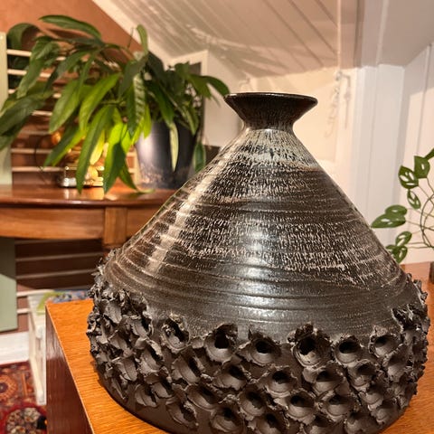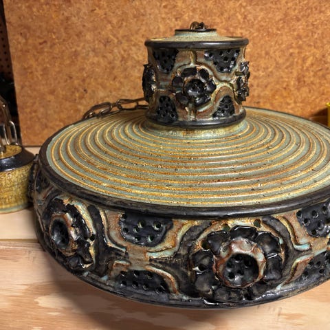 Fin vintage stentøjs/ keramik lampe fra 70erne lavet af Jytte hellesøe. Der er et enkelt lille afslag, som evt kan tegnes over.