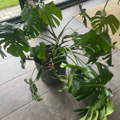 Monstera deliciosa stueplante i grøn. Planten har store fligede blade og egner sig som indendørs prydplante i stue eller opholdsrum. Placeres lyst uden direkte, skarp sol og trives i almindelig stuetemperatur. Kræver jævnlig vanding, hvor jorden holdes let fugtig, samt lejlighedsvis gødning i vækstsæsonen.