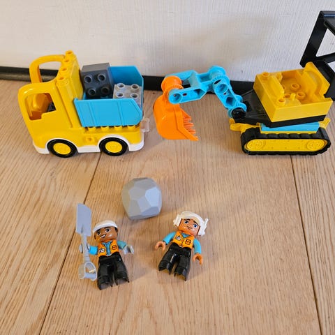 LEGO DUPLO komplet sæt med køretøjer og bevægeligt transportbånd. Der medfølger 2 arbejdskøretøjer. Perfekt til barnet der elsker byggepladser. Samlevejledning medfører.