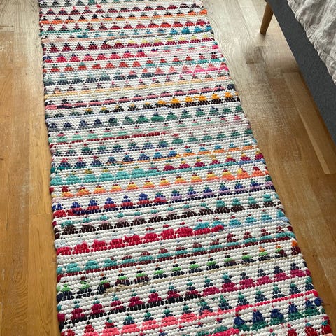 Der følger et skridsikkert blødt underlag med fra IKEA, for at gøre det endnu mere blødt at gå på. Det passer under det store tæppe, men kan klippes over hvis man vil have tæpperne seperat.