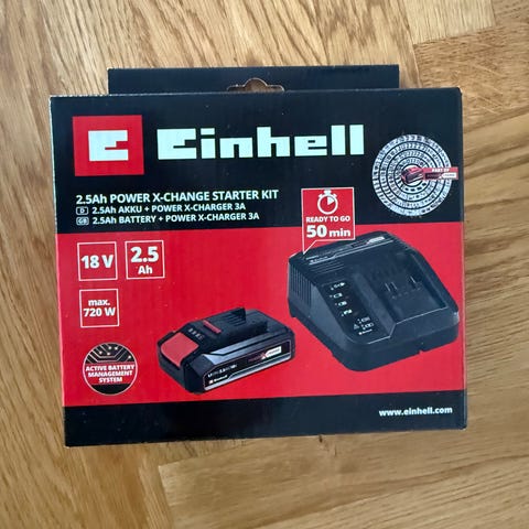Helt ny Einhell batteri og oplader, ligger i uåbnet kasse.