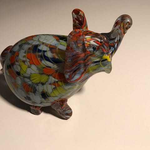 Fine elefanter i klart glas. Buttede med lille sød kort snabel, som ikke så let lider overlast. Fra Bergdala i Sydsverige.