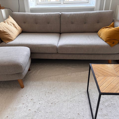 Sofaen er købt hos Møbelkompagniet d. 23/4-24. Den fremstår ny og pæn. Betrækket kan tages af. Nyprisen er 9999 kr.