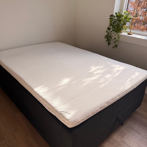 Sengen er brugt med topmadras.