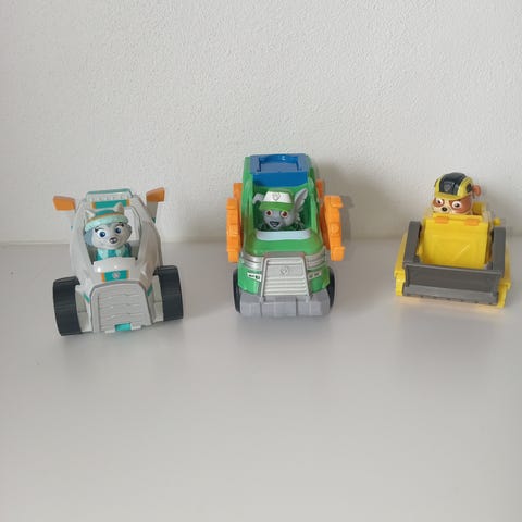 Paw Patrol figurer og køretøjer sæt. Sættet indeholder flere små Paw Patrol figurer samt tilhørende køretøjer i forskellige farver. Egnet som legetøj til børn, til leg med figurer og køretøjer på gulv eller bord. Plastmateriale, størrelse passende til børnehænder.