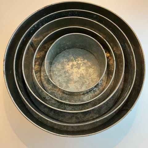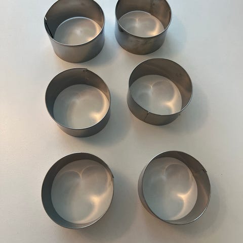 hjerteformede metalforme til bagning. Sæt med 3 forme i forskellige størrelser, udført i galvaniseret metal. Formene er udformet som hjerter og kan anvendes til bagning eller som forme til desserter og andre køkkenformål. Gode til hvis man skal lave bryllupskage/etagekage. Brugt få gange
